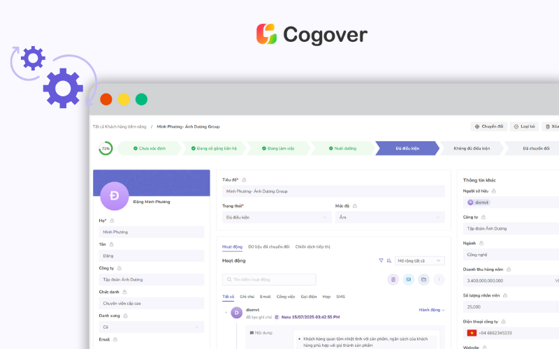 Khi doanh nghiệp cân nhắc lựa chọn một nền tảng CRM, yếu tố quan trọng không chỉ nằm ở các tính năng cơ bản mà còn ở khả năng tùy chỉnh linh hoạt, dễ sử dụng và tích hợp công nghệ AI tiên tiến. Một giải pháp tốt cần vừa phù hợp với quy trình hiện tại, vừa giúp doanh nghiệp tăng trưởng, tối ưu và hiện đại hóa quản trị khách hàng. Đó chính là những gì Cogover CRM mang lại.