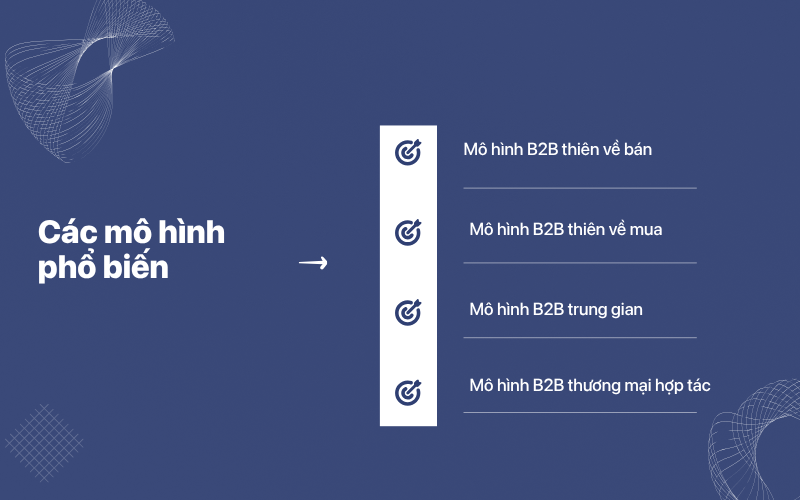 Trong thực tế, B2B có nhiều cách triển khai khác nhau tùy thuộc vào vai trò, nhu cầu và cách thức hợp tác giữa các doanh nghiệp. Dưới đây là bốn mô hình B2B điển hình mà bạn cần nắm rõ: