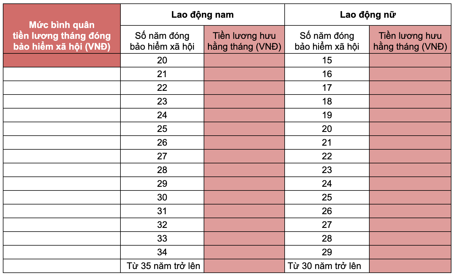 Ví dụ: Một nữ nhân viên sinh năm 1970, đã đóng BHXH 25 năm và đến tuổi 60 vào năm 2030, sẽ đủ điều kiện nhận lương hưu hằng tháng theo mức bình quân tiền lương đã đóng.