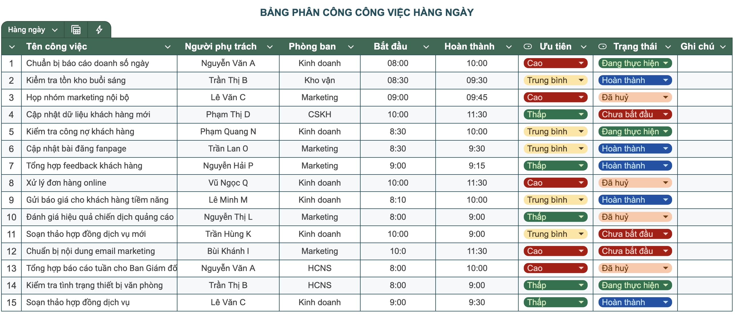 👉 TẢI NGAY: Bảng phân công công việc hàng ngày