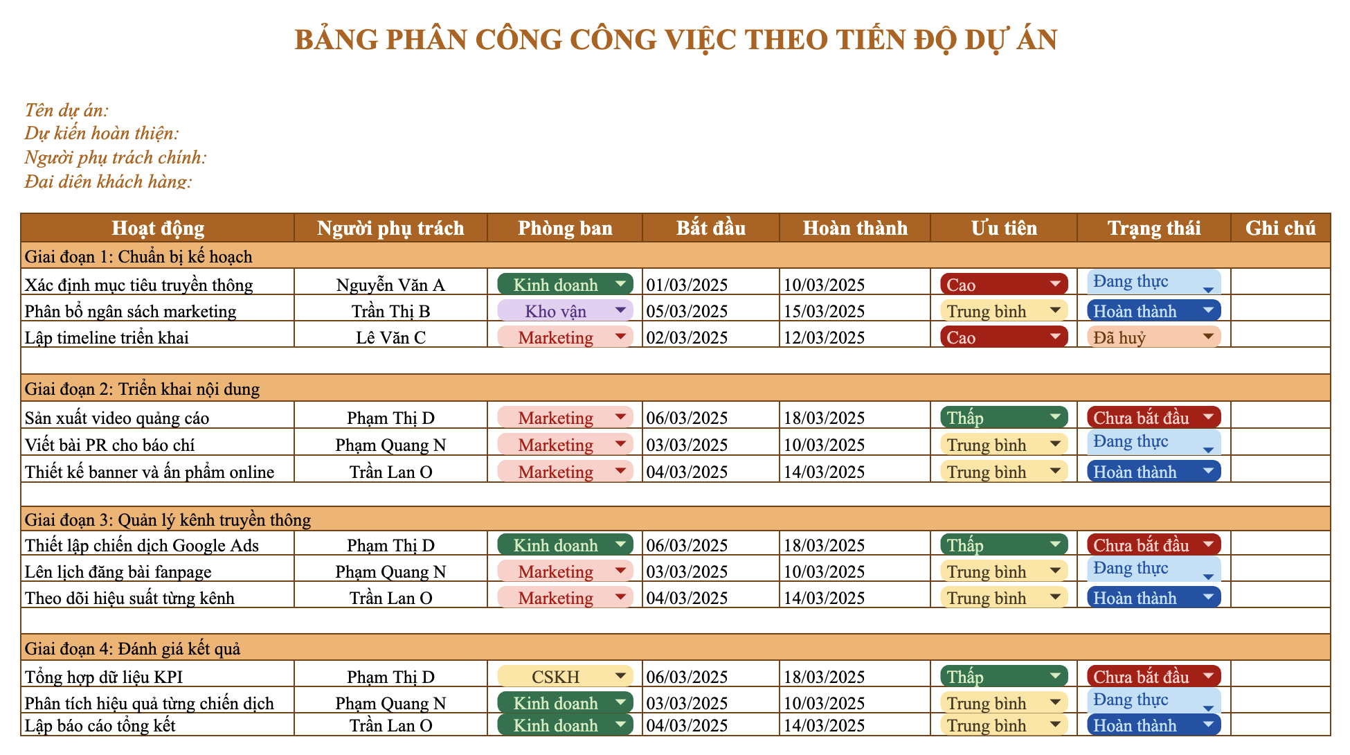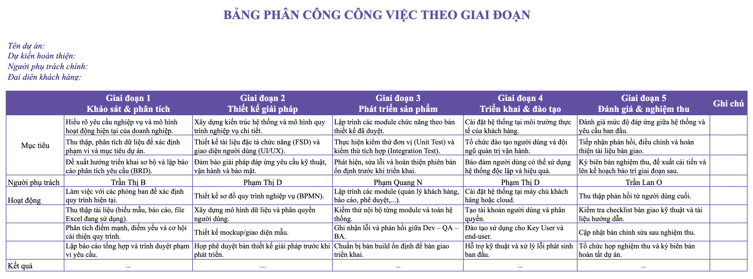 👉 TẢI NGAY: Bảng phân công công việc theo giai đoạn