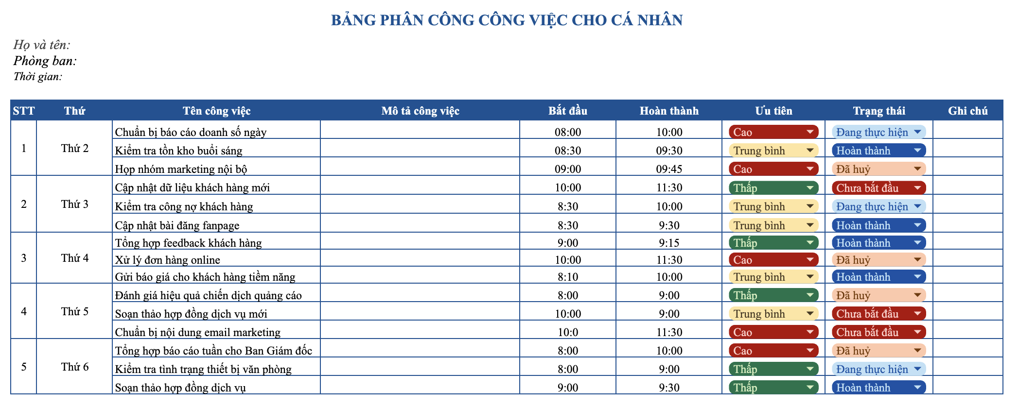 👉 TẢI NGAY: Bảng phân công công việc cho cá nhân