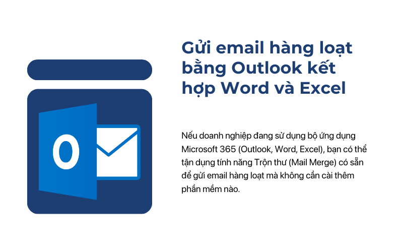 Nếu doanh nghiệp đang sử dụng bộ ứng dụng Microsoft 365 (Outlook, Word, Excel), bạn có thể tận dụng tính năng Trộn thư (Mail Merge) có sẵn để gửi email hàng loạt mà không cần cài thêm phần mềm nào.