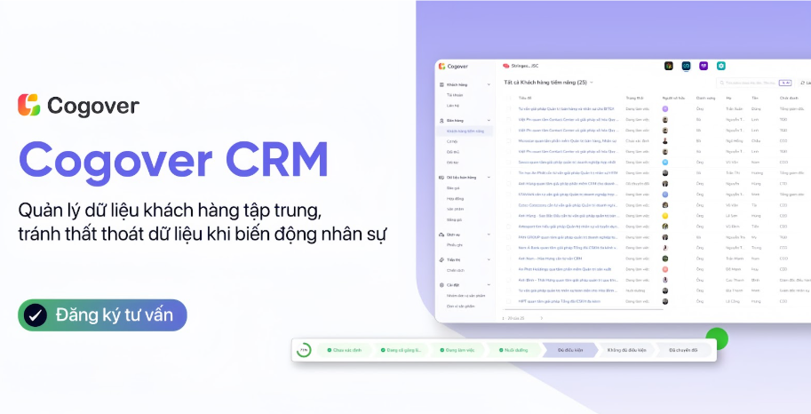 Trong thời đại dữ liệu số, việc khơi gợi nhu cầu khách hàng không chỉ phụ thuộc vào kỹ năng của sales mà còn cần sự hỗ trợ từ công nghệ. Cogover CRM được thiết kế như một nền tảng quản trị khách hàng thế hệ mới, giúp doanh nghiệp thấu hiểu khách hàng sâu hơn và tối ưu hóa quá trình bán hàng.