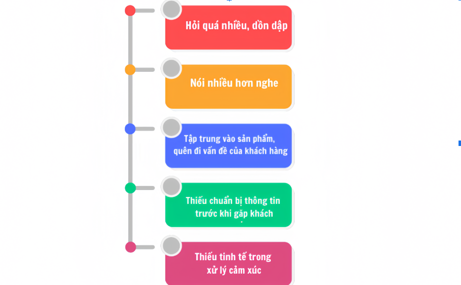 Khơi gợi nhu cầu là một kỹ năng quan trọng, nhưng không phải ai cũng thực hiện đúng cách. Dưới đây là những sai lầm phổ biến khiến nhiều nhân viên sales. tư vấn khó đạt được kết quả mong muốn: