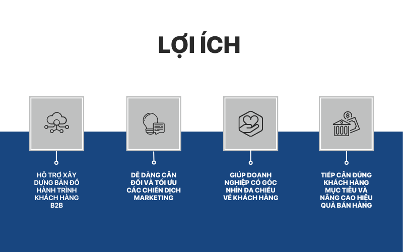 Hỗ trợ xây dựng bản đồ hành trình khách hàng B2B: Khi nắm rõ đặc điểm và hành vi của khách hàng, doanh nghiệp có thể xác định chính xác các điểm chạm quan trọng trong suốt hành trình mua hàng B2B. Điều này giúp xây dựng bản đồ hành trình trải nghiệm khách hàng phù hợp, từ giai đoạn nhận biết, cân nhắc đến ra quyết định, qua đó nhận diện đúng các điểm đau và nâng cao khả năng chuyển đổi.