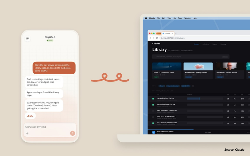 Tháng 3/2026, Anthropic giới thiệu tính năng Computer Use kết hợp với Dispatch (thuộc Claude Cowork), cho phép người dùng gửi task từ điện thoại và Claude sẽ thực hiện trực tiếp trên máy tính.