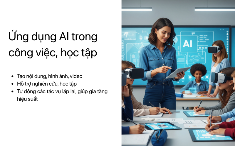 Trong công việc và học tập, AI đóng vai trò như một trợ lý thông minh, giúp con người tiết kiệm thời gian và nâng cao hiệu quả: