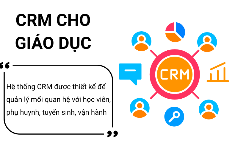 CRM cho giáo dục là hệ thống phần mềm giúp các trường học, trung tâm đào tạo và cơ sở giáo dục quản lý toàn bộ mối quan hệ với học viên và phụ huynh trên một nền tảng tập trung. Khác với CRM thông thường chỉ tập trung vào bán hàng, CRM cho giáo dục được thiết kế chuyên biệt để phục vụ nhu cầu quản lý tuyển sinh, quá trình học tập, chăm sóc học viên và nâng cao trải nghiệm phụ huynh.