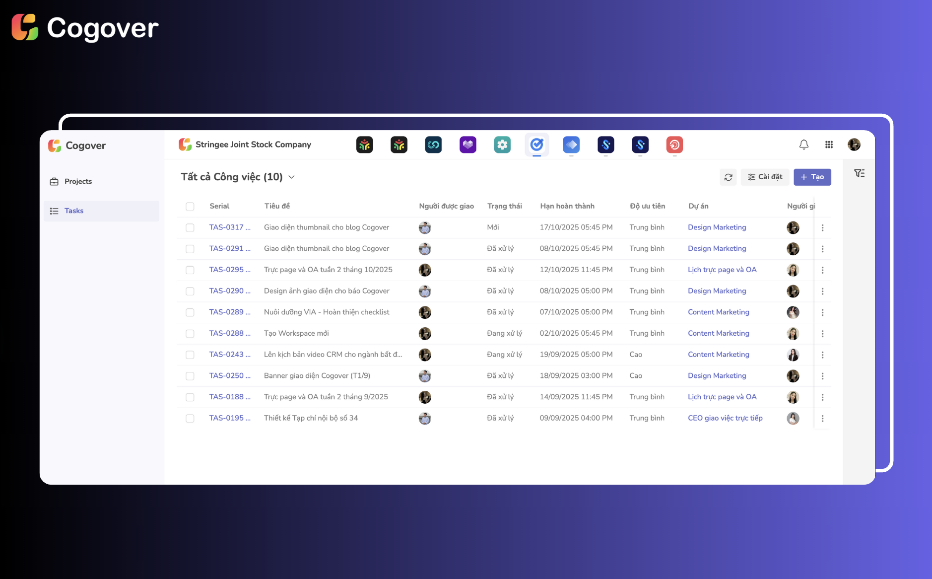 Cogover Task giúp doanh nghiệp hiện đại hóa cách làm việc, quản lý deliverable khoa học hơn, tiết kiệm thời gian và đảm bảo mọi cam kết bàn giao đều được thực hiện đúng người - đúng hạn - đúng chất lượng.