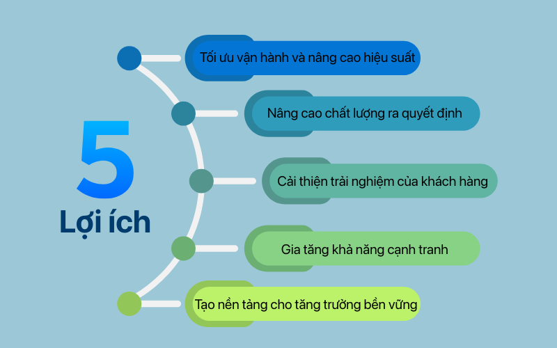 Các dữ liệu này được phân tích để cung cấp cái nhìn toàn diện và chính xác, giúp nhà quản lý đưa ra quyết định dựa trên cơ sở thực tế thay vì cảm tính. Điều này không chỉ nâng cao chất lượng quyết định mà còn giúp doanh nghiệp phản ứng nhanh hơn trước các biến động.