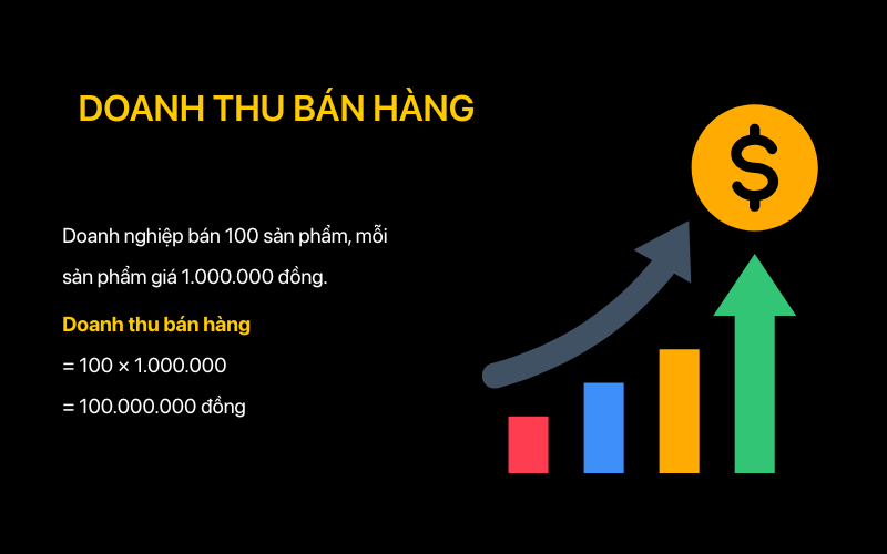 Ví dụ: Doanh nghiệp bán 100 sản phẩm, mỗi sản phẩm giá 1.000.000 đồng. Doanh thu bán hàng = 100 × 1.000.000 = 100.000.000 đồng