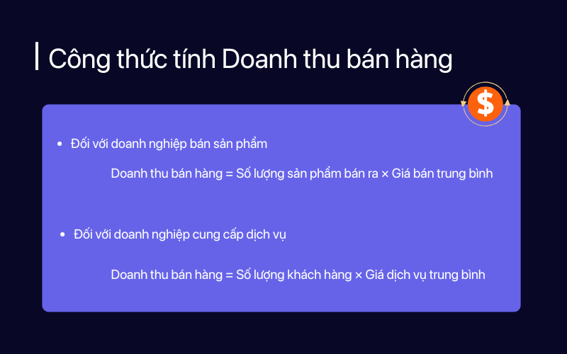 Đối với doanh nghiệp bán sản phẩm: Doanh thu bán hàng được tính bằng số lượng sản phẩm bán ra nhân với giá bán trung bình: