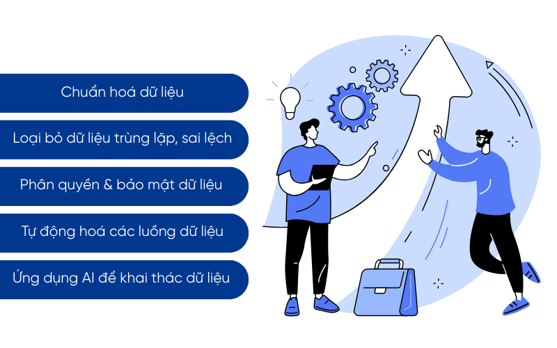 Quản trị dữ liệu CRM là nền tảng giúp doanh nghiệp duy trì thông tin khách hàng chính xác, nhất quán. Khi dữ liệu được quản lý đúng cách, doanh nghiệp sẽ giảm rủi ro sai lệch, tăng hiệu suất đội ngũ và cải thiện chất lượng ra quyết định. Dưới đây là các nguyên tắc quan trọng cần áp dụng.