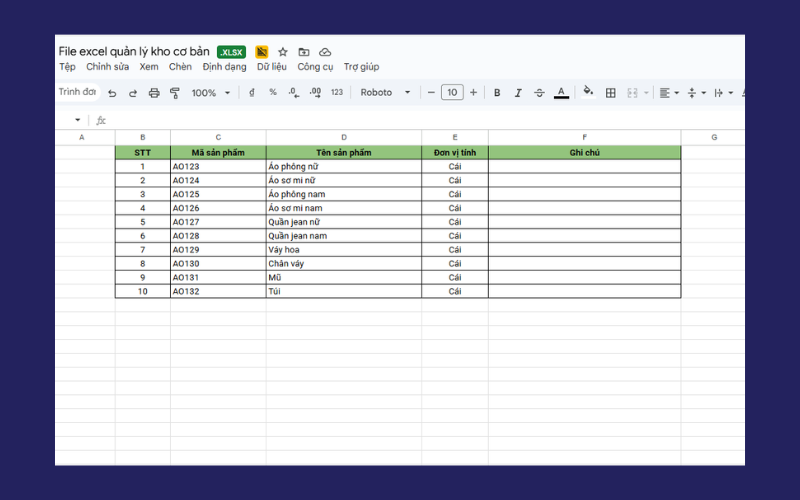 Tùy chỉnh linh hoạt: Excel cho phép người dùng tự thiết kế bảng tính, thêm cột, công thức hoặc định dạng theo quy trình quản lý riêng. Điều này giúp doanh nghiệp chủ động thiết lập cấu trúc quản lý phù hợp với từng ngành hàng hoặc đặc thù sản phẩm.