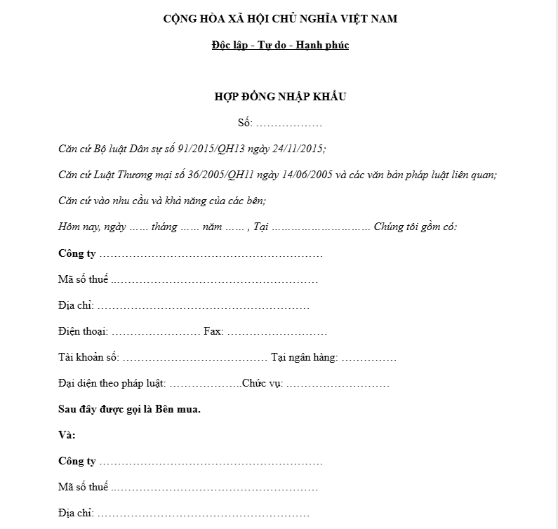 📥 Tải mẫu: Hợp đồng mua bán hàng hóa nhập khẩu