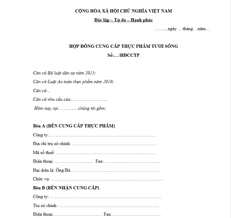 📥 Tải mẫu: Hợp đồng mua bán hàng hóa thực phẩm