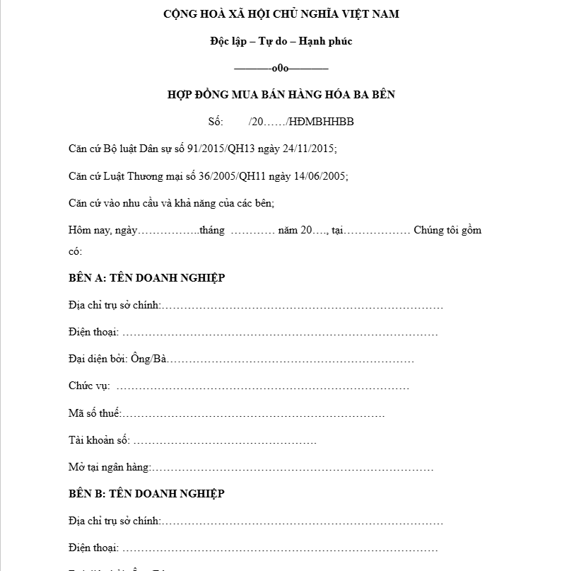 📥 Tải mẫu: Hợp đồng mua bán hàng hóa 3 bên