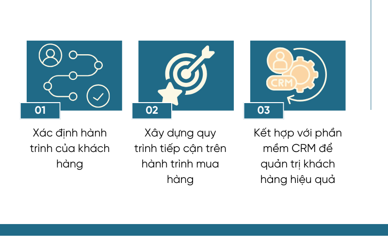 Để triển khai Inbound Sales một cách bài bản, doanh nghiệp không cần bắt đầu từ những mô hình phức tạp. Trên thực tế, một chiến lược inbound sales hiệu quả có thể được xây dựng dựa trên ba bước cốt lõi: hiểu khách hàng - thiết kế quy trình tiếp cận - quản trị dữ liệu và hành trình mua hàng.