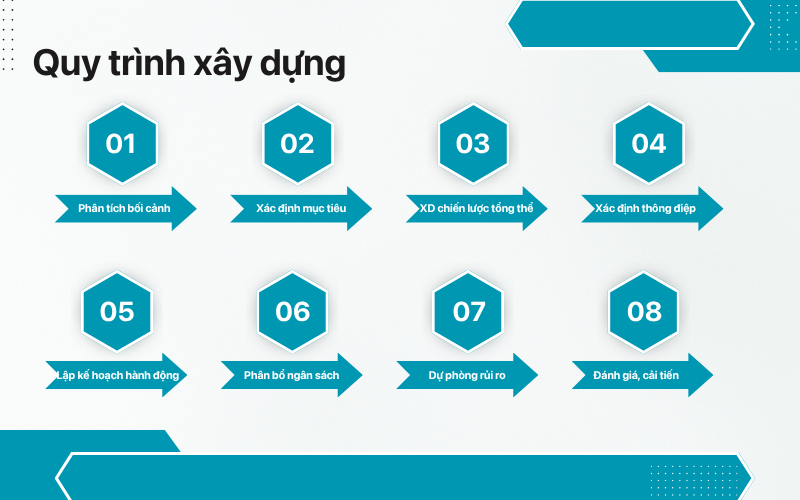 Để xây dựng một kế hoạch truyền thông hiệu quả, doanh nghiệp không chỉ cần biết bản kế hoạch gồm những gì mà còn phải nắm rõ cách triển khai từng bước. Dưới đây là 8 bước quan trọng giúp bạn hình dung và áp dụng ngay vào thực tế.