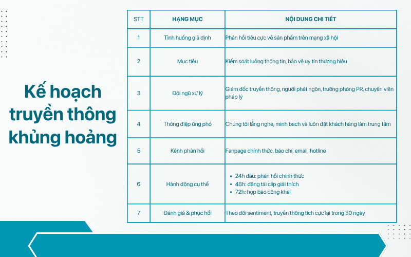 Đây không chỉ là công cụ phản ứng nhanh, mà còn giúp doanh nghiệp phòng ngừa rủi ro, kiểm soát luồng thông tin khi sự cố bùng phát và định hướng phục hồi hình ảnh sau khủng hoảng. Đây là một phần quan trọng trong quản trị rủi ro, đảm bảo uy tín và niềm tin thương hiệu được duy trì bền vững.