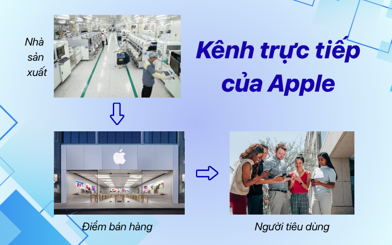 Apple là minh chứng điển hình cho việc áp dụng kênh phân phối trực tiếp toàn diện. Các cửa hàng Apple Store không chỉ là nơi bày bán sản phẩm mà còn là không gian trải nghiệm hoàn chỉnh, nơi khách hàng có thể thử sản phẩm, tham gia workshop, nhận tư vấn trực tiếp từ nhân viên chuyên nghiệp và trải nghiệm dịch vụ hậu mãi ngay tại chỗ.