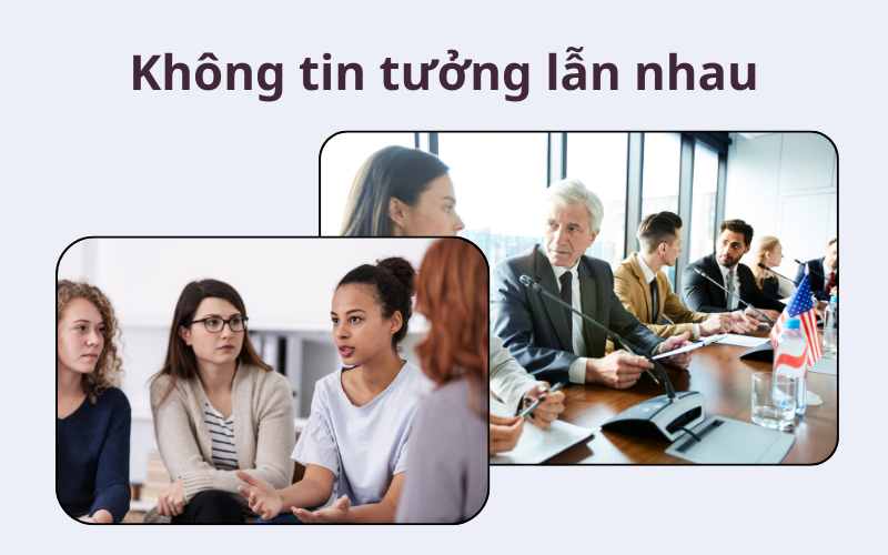 Thiếu sự tin tưởng giữa các thành viên là một trong những khó khăn khi làm việc nhóm ảnh hưởng sâu sắc đến hiệu quả phối hợp. Khi các thành viên không tin tưởng lẫn nhau, quá trình hợp tác dễ trở nên rời rạc, thiếu cởi mở và kém hiệu quả.