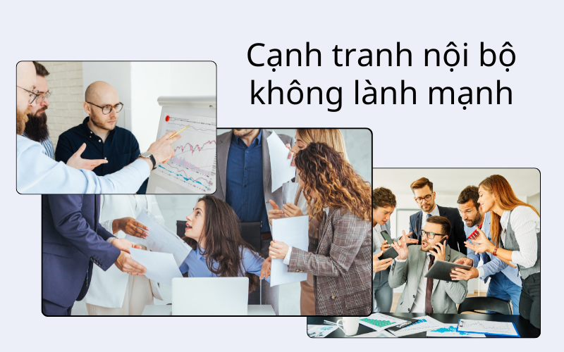 Cạnh tranh trong làm việc nhóm có thể tạo động lực nếu được định hướng đúng. Tuy nhiên, khi cạnh tranh nội bộ diễn ra không lành mạnh, đây sẽ trở thành một trong những khó khăn khi làm việc nhóm ảnh hưởng trực tiếp đến sự hợp tác và tinh thần tập thể, biểu hiện qua các khía cạnh sau: