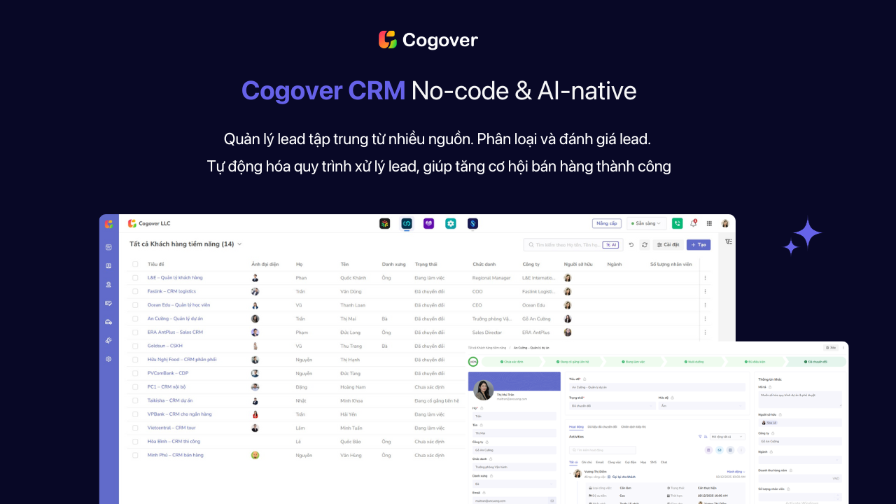 Với các nền tảng CRM linh hoạt như Cogover CRM, doanh nghiệp không chỉ quản lý lead tốt hơn mà còn liên tục tối ưu chiến lược lead generation dựa trên dữ liệu thực, từ đó nâng cao hiệu quả marketing và tăng khả năng chuyển đổi cho đội sales.