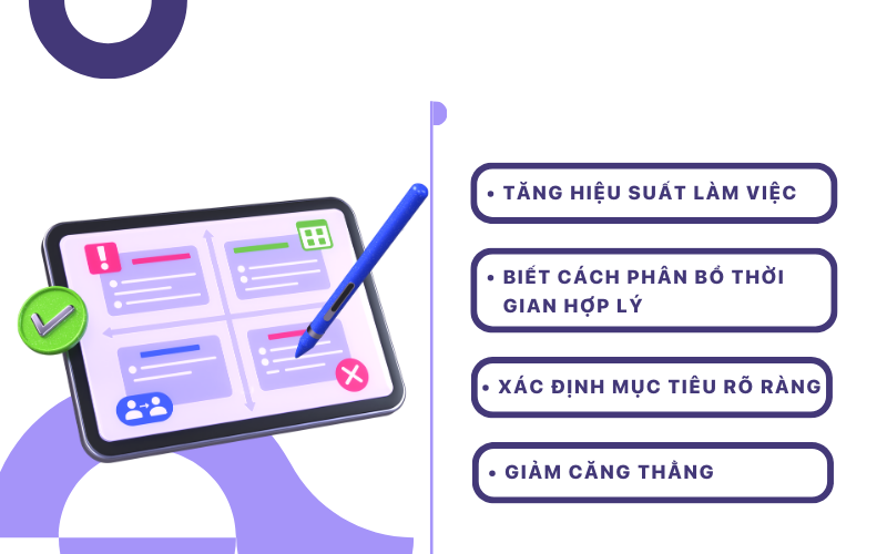 Việc áp dụng ma trận Eisenhower giúp cá nhân và đội nhóm quản lý thời gian khoa học hơn, tránh bị cuốn vào những công việc gấp nhưng không thật sự quan trọng. Một số ý nghĩa nổi bật bao gồm: