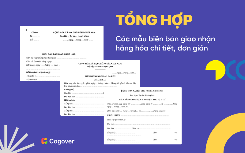 Trong hoạt động kinh doanh, quá trình giao và nhận hàng hóa đòi hỏi sự chính xác và minh bạch tuyệt đối. Để đảm bảo điều đó, doanh nghiệp thường sử dụng mẫu biên bản giao nhận hàng hóa Excel - công cụ giúp ghi chép, kiểm soát và lưu trữ thông tin một cách khoa học. Trong bài viết này, Cogover sẽ chia sẻ các mẫu biên bản giao nhận hàng hóa phổ biến để anh chị tham khảo.