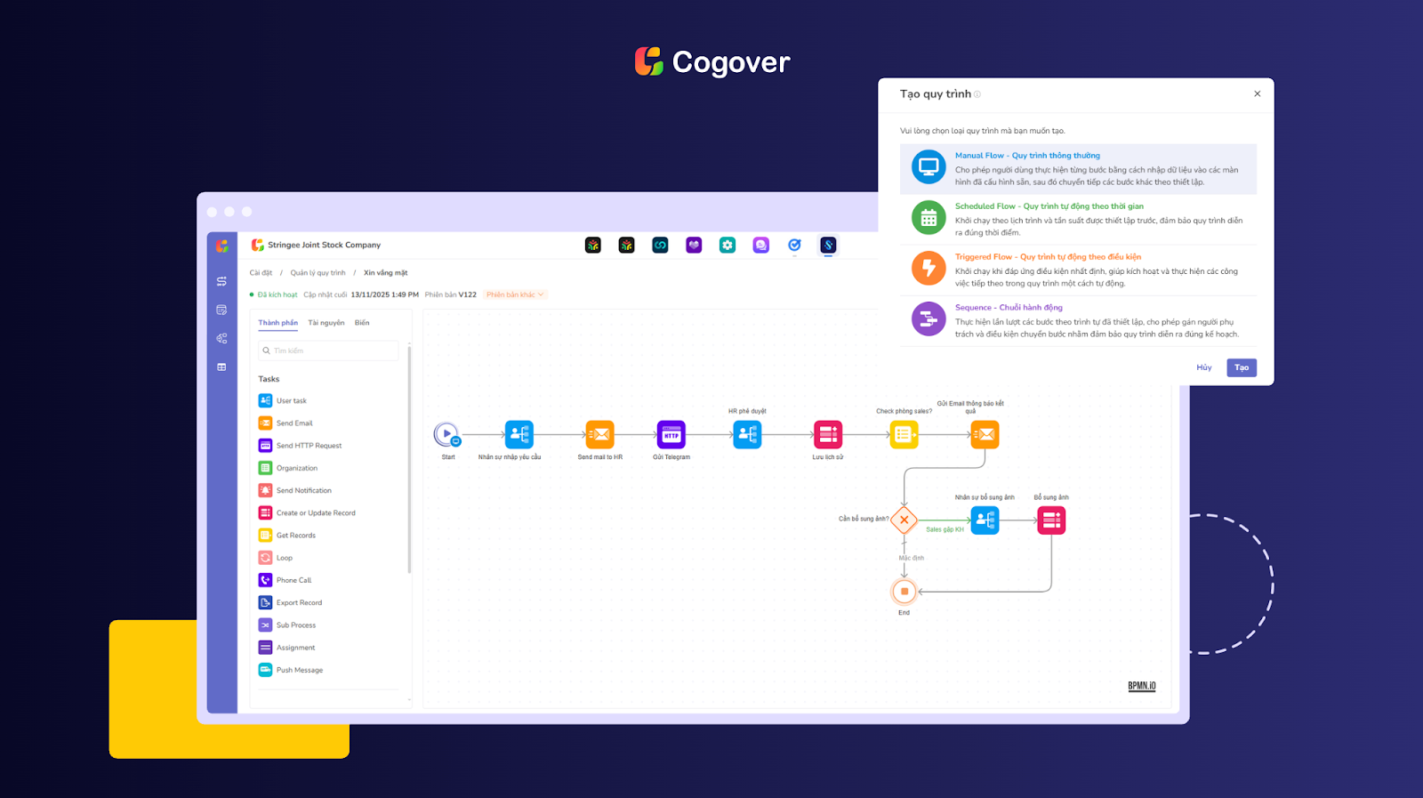 Số hóa và tự động hóa hoàn toàn công tác vận hành và quản trị doanh nghiệp với Cogover!