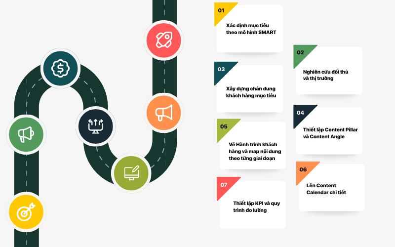 Dưới đây là quy trình 7 bước mà Cogover đã đúc kết từ thực tế hỗ trợ các doanh nghiệp SME Việt Nam triển khai hoạt động marketing nội dung. Mỗi bước đều đi kèm hướng dẫn cụ thể để bạn có thể áp dụng ngay.