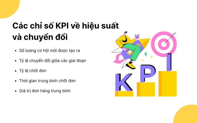 Bên cạnh doanh số, hiệu suất và khả năng chuyển đổi trong từng giai đoạn bán hàng là yếu tố quyết định giúp đánh giá đúng năng lực thực sự của mỗi nhân viên kinh doanh. Những chỉ số này phản ánh cách sales xây dựng pipeline, nuôi dưỡng khách hàng và đưa cơ hội từ giai đoạn đầu tới khi chốt hợp đồng. Dưới đây là các KPI quan trọng giúp doanh nghiệp nhìn rõ chất lượng công việc thay vì chỉ nhìn vào doanh thu cuối cùng.