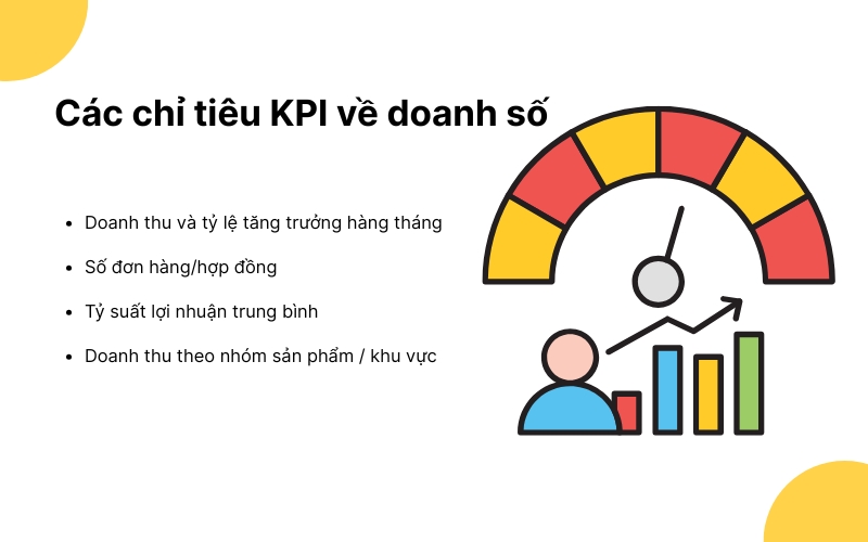 Đối với đội ngũ sales, doanh số luôn là nhóm KPI quan trọng nhất vì phản ánh trực tiếp khả năng mang về nguồn thu cho doanh nghiệp. Những chỉ số này thường được thiết lập rõ ràng, đo lường được và gắn chặt với mục tiêu tăng trưởng chung của công ty. Dưới đây là các KPI doanh số phổ biến được sử dụng để đánh giá hiệu quả của nhân viên kinh doanh.