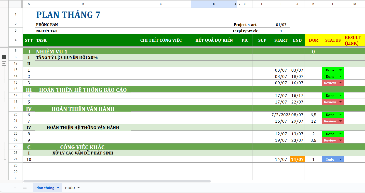 Để có một bảng kế hoạch hoàn chỉnh, bạn phải thiết kế bố cục, định dạng, tạo công thức, màu sắc và cấu trúc quản lý phù hợp. Điều này đòi hỏi nhiều công sức ban đầu và cả quá trình bảo trì, cập nhật sau này, đặc biệt bất tiện với người không rành Excel.