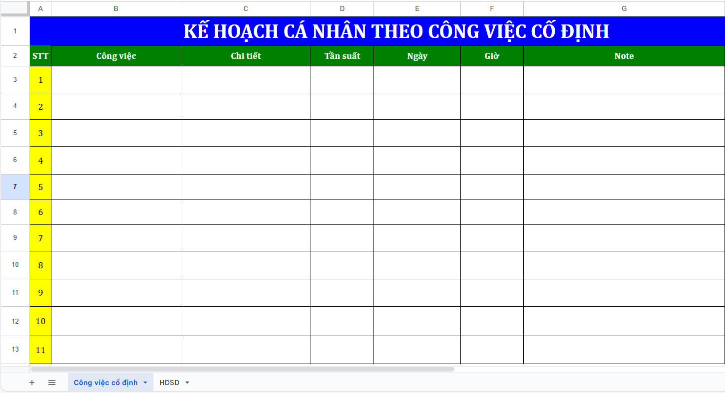 Với những người có lịch trình đều đặn, mẫu kế hoạch làm việc cá nhân theo công việc cố định sẽ giúp bạn tổ chức và kiểm soát tốt tiến độ. Mẫu này đặc biệt phù hợp cho các vị trí có công việc lặp lại như hành chính, kế toán hay chăm sóc khách hàng. Việc lập kế hoạch làm việc cá nhân theo khung giờ cố định giúp bạn duy trì sự ổn định, tránh quên nhiệm vụ và đảm bảo năng suất hàng ngày.