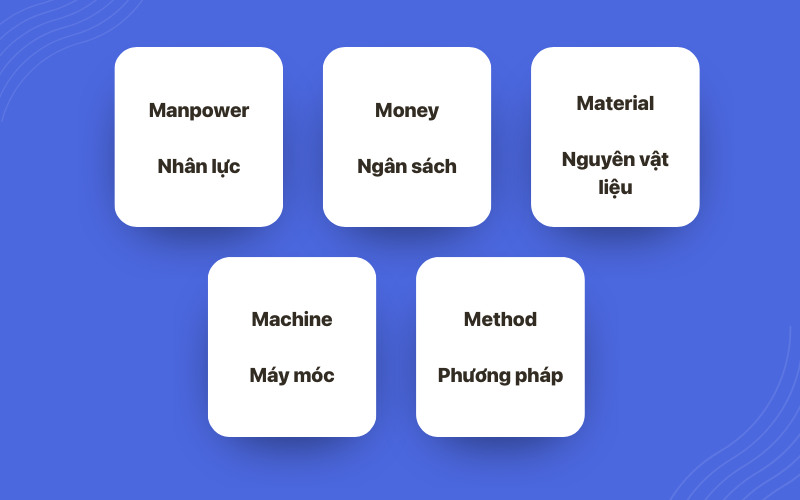 Mô hình 5M gồm 5 thành phần chính, mỗi thành phần đại diện cho một nhóm nguồn lực khác nhau trong hoạt động quản trị và vận hành doanh nghiệp. Việc hiểu rõ vai trò của từng yếu tố giúp doanh nghiệp đánh giá toàn diện thực trạng và xác định đúng các điểm cần tối ưu.