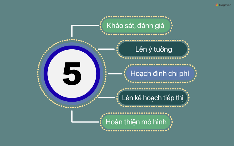 Để một mô hình kinh doanh hoạt động hiệu quả, doanh nghiệp cần tuân theo một quy trình bài bản, từ khảo sát thị trường đến hoàn thiện vận hành trong tổ chức. Quy trình này giúp giảm rủi ro, tối ưu nguồn lực và tăng khả năng thành công khi triển khai mô hình.