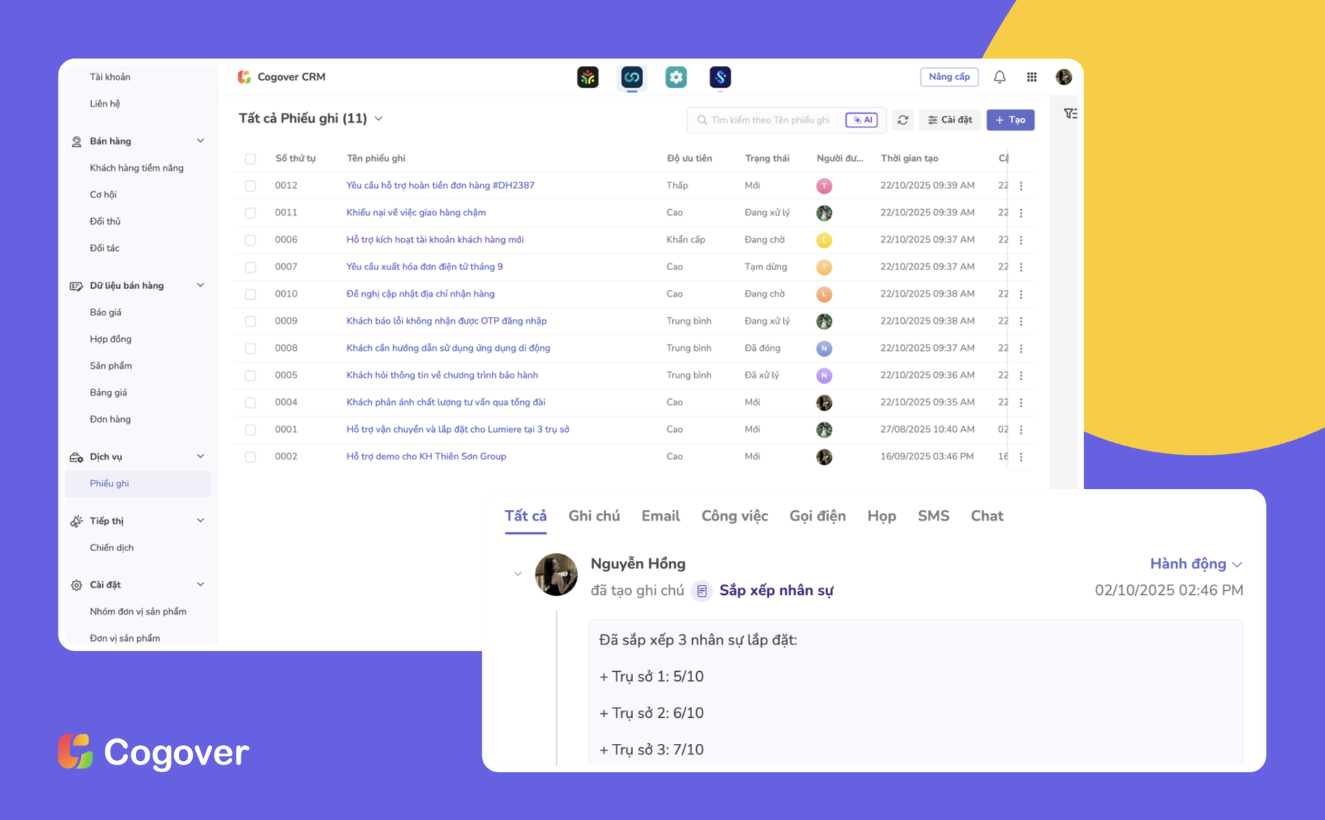 5. Quản lý công việc chăm sóc khách hàng dễ dàng hơn với Cogover CRM