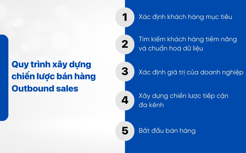 Để Outbound sales mang lại hiệu quả thực tế, doanh nghiệp cần triển khai theo một quy trình rõ ràng thay vì tiếp cận rời rạc hoặc cảm tính. Dưới đây là quy trình 5 bước cơ bản giúp xây dựng chiến lược outbound sales bài bản, dễ áp dụng và phù hợp với nhiều mô hình bán hàng khác nhau.