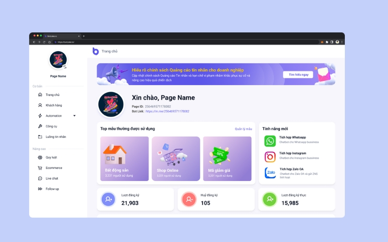 Botbanhang là nền tảng chatbot miễn phí khá quen thuộc với các chủ shop kinh doanh trên Facebook, Zalo và Website. Công cụ tập trung mạnh vào hỗ trợ bán hàng, quản lý hội thoại và tự động chốt đơn, phù hợp với doanh nghiệp nhỏ và cá nhân kinh doanh online.