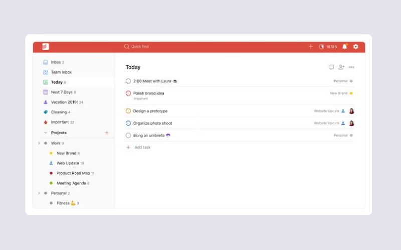 Todoist là ứng dụng quản lý công việc cá nhân với hơn 10 triệu người dùng, thiết kế tối giản và tập trung vào trải nghiệm lập danh sách việc cần làm hàng ngày.