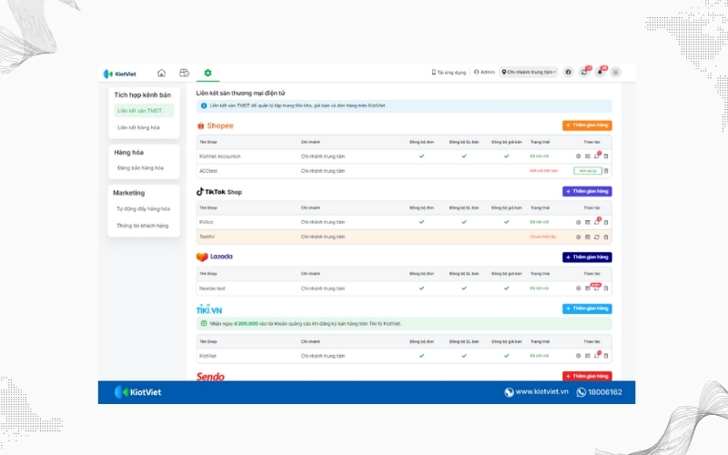 Có. Hầu hết các giải pháp hiện đại đều cho phép kết nối website, mạng xã hội, sàn TMĐT và cửa hàng để đồng bộ đơn hàng – tồn kho – vận chuyển, tránh trùng đơn hoặc sai lệch số liệu.