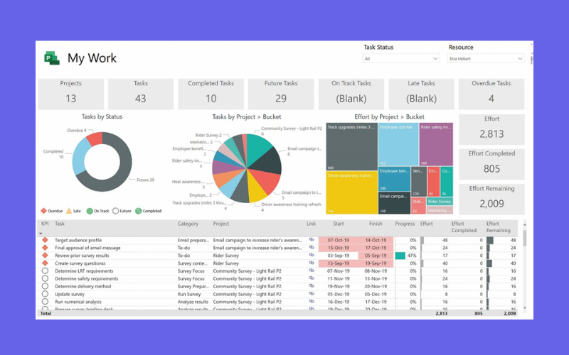 - Báo cáo và đánh giá hiệu suất dự án: Các báo cáo về tiến độ, tỷ lệ hoàn thành, công việc trễ hạn hay hiệu suất theo cá nhân/đội nhóm là cơ sở quan trọng để đánh giá và cải thiện cách triển khai dự án.