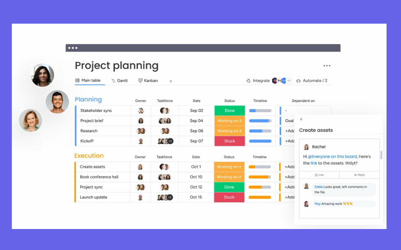 - Quản lý dự án theo List, Board, Timeline, Calendar