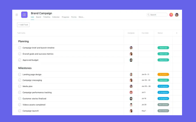 Asana là phần mềm quản lý dự án và công việc được nhiều doanh nghiệp và đội nhóm chuyên nghiệp lựa chọn, đặc biệt trong các lĩnh vực công nghệ, sản phẩm, marketing và vận hành. Điểm mạnh của Asana nằm ở khả năng quản lý công việc có cấu trúc, giúp team theo dõi rõ ràng mục tiêu, tiến độ và mối liên kết giữa các đầu việc trong cùng một dự án.