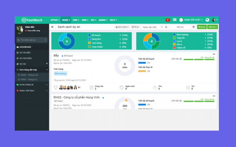 - Quản lý dự án và công việc theo phòng ban – dự án