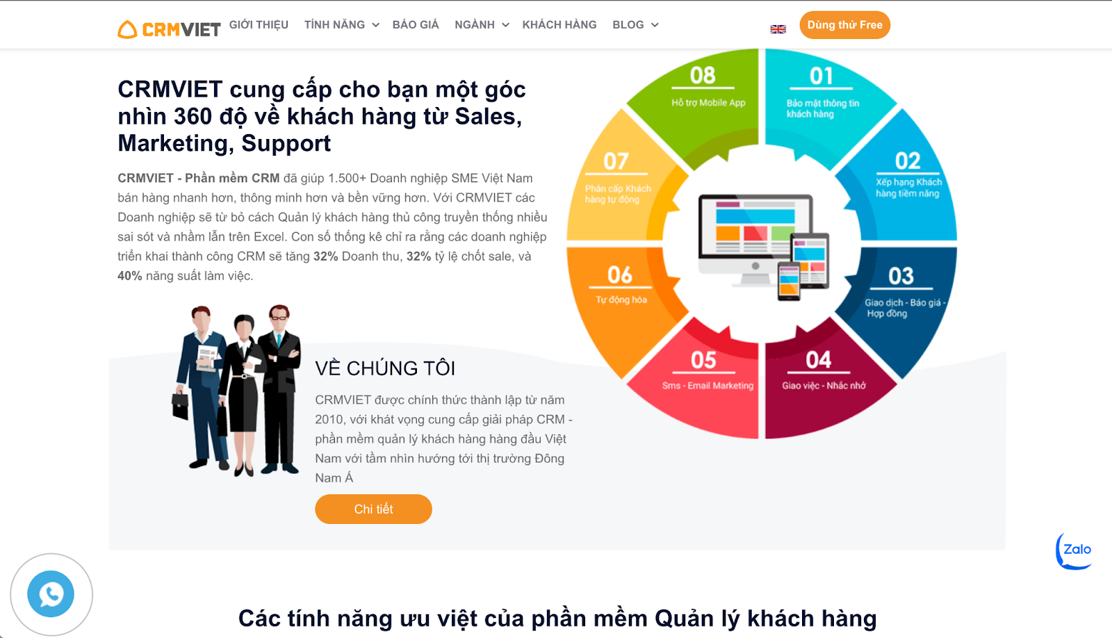 CRMViet là phần mềm CRM được nhiều trung tâm tiếng Anh sử dụng để quản lý quá trình tuyển sinh, chăm sóc học viên và theo dõi doanh thu. Điểm mạnh lớn nhất của CRMViet nằm ở khả năng kiểm soát data khách hàng và quản lý quy trình tư vấn, giúp trung tâm tăng tỷ lệ chốt khóa học và giảm thất thoát thông tin trong quá trình ghi nhận, chuyển giao giữa các bộ phận.