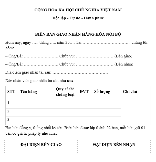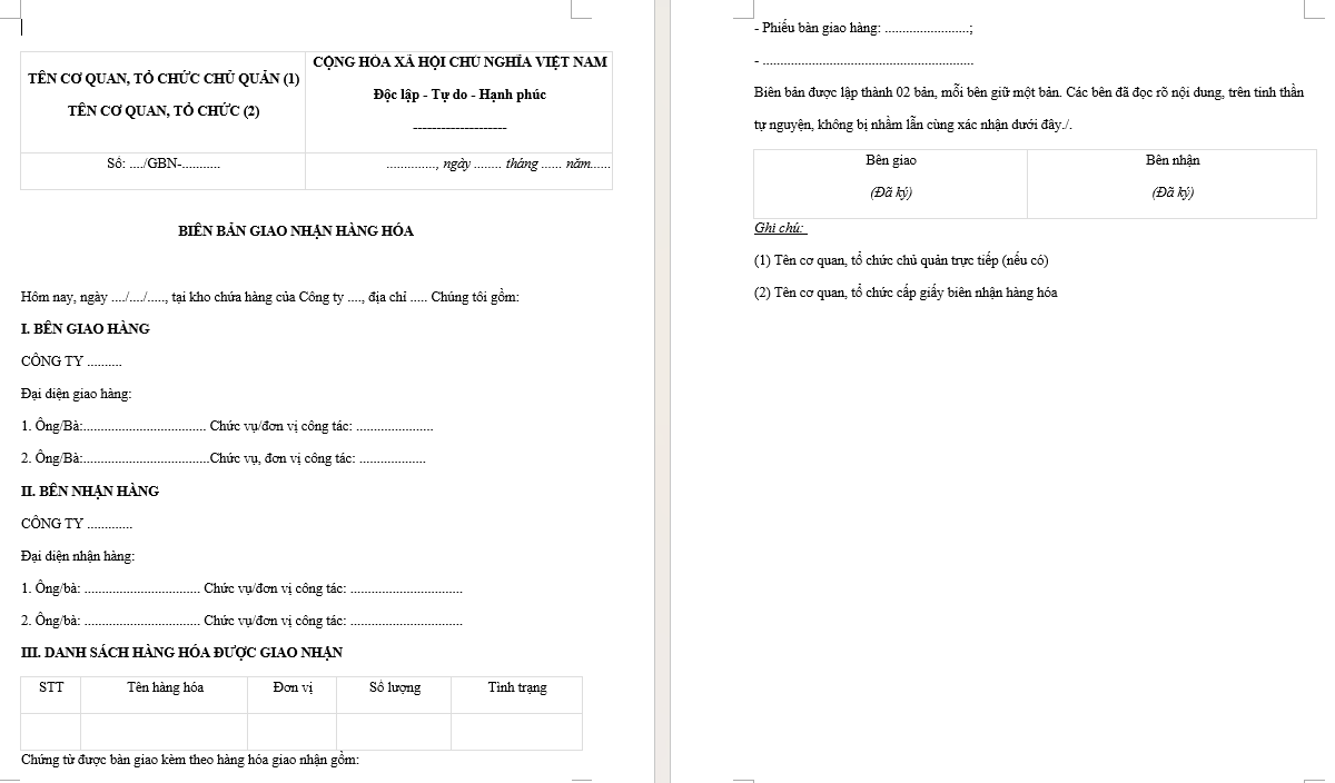 5 Mẫu biên bản giao nhận hàng hóa Excel chi tiết